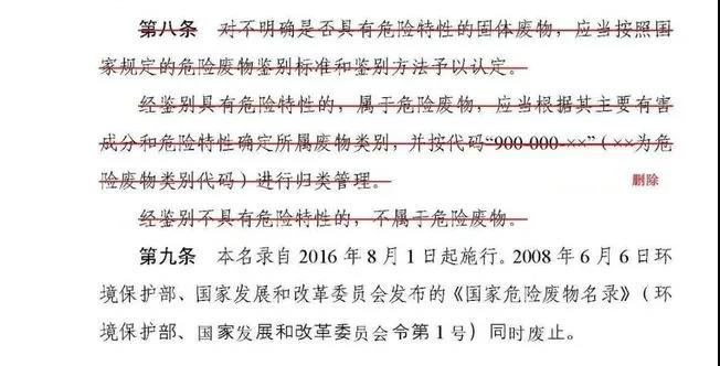 一是刪除2016 年版《名錄》正文第四條“列入《危險化學品目錄》的化學品廢棄后屬于危險廢物”;