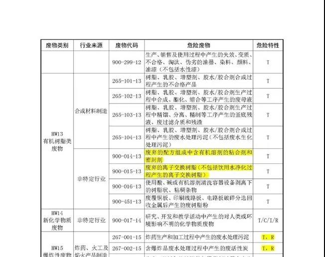 7.明確部分類別廢物的涵蓋范圍。2016 年版《名錄》中對樹脂、乳膠、增塑劑生產(chǎn)過程中產(chǎn)生的危險廢物的界定不清晰,導致涵蓋范圍過大。實際調(diào)研發(fā)現(xiàn)不同來源的上述廢物危險特性存在較大的差異。根據(jù)危險特性調(diào)查結果,本次修訂將其中危險特性較小、環(huán)境風險可控的廢物從《名錄》中刪除。