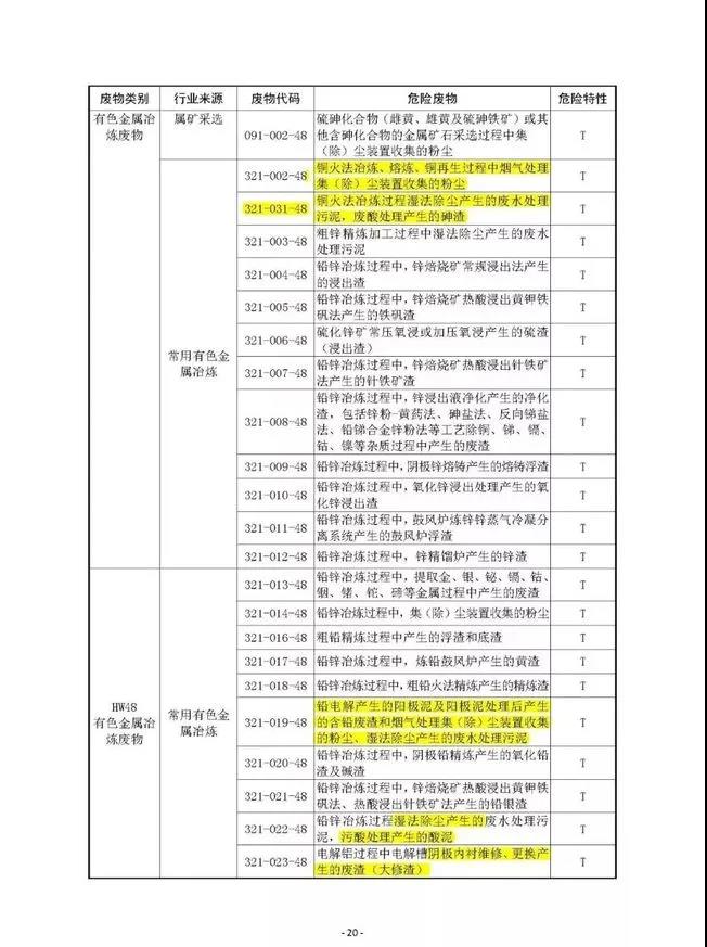5.修改銅、鉛、鋅冶煉相關危險廢物的規(guī)定。2016 年版《名錄》對銅、鉛、鋅等有色金屬冶煉過程產(chǎn)生的危險廢物類型及工藝描述不清,本次修訂過程中對該類廢物開展了專項調(diào)查研究,重新梳理并細化了銅、鉛、鋅冶煉過程產(chǎn)生的危險廢物種類及其工藝來源和危險特性。