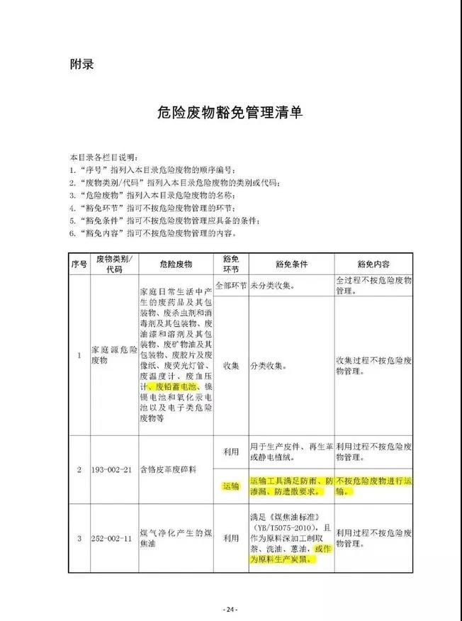 第四條列入本名錄附錄《危險廢物豁免管理清單》中的危險廢物,在所列的豁免環(huán)節(jié),且滿足相應的豁免條件時,可以按照豁免內(nèi)容的規(guī)定實行豁免管理。