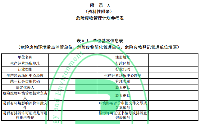 5.3.2 危險廢物簡化管理單位的管理計劃制定內(nèi)容應(yīng)包括單位基本信息、危險廢物產(chǎn)生情況信息、危險廢物貯存情況信息、危險廢物減量化計劃和措施、危險廢物轉(zhuǎn)移情況信息。