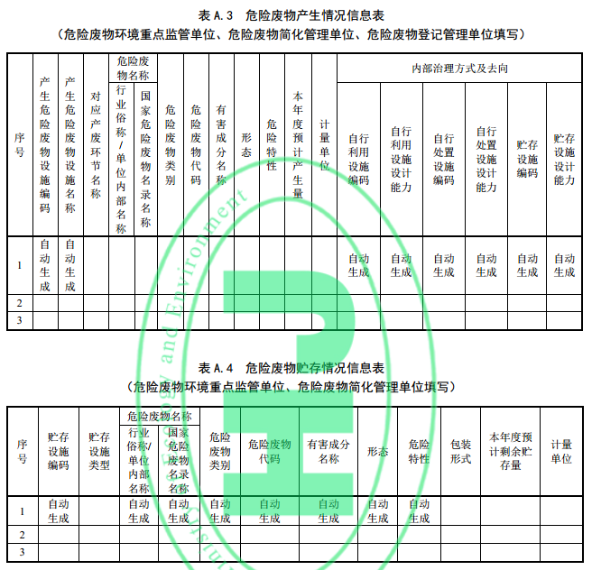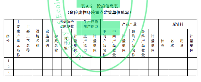 危險廢物產(chǎn)生情況填寫內(nèi)容參見附錄 A.3,填寫應(yīng)滿足以下要求。