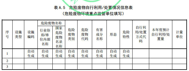 5.5.3.1 危險廢物自行利用/處置情況填寫內(nèi)容參見附錄 A.5,填寫應(yīng)滿足以下要求。