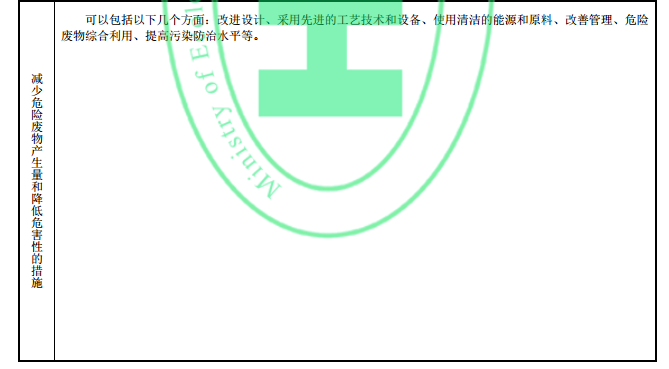 5.5.4.2 根據(jù)自身產(chǎn)品生產(chǎn)和危險廢物產(chǎn)生情況,在借鑒同行業(yè)發(fā)展水平和經(jīng)驗的基礎(chǔ)上,提出減少危險廢物產(chǎn)生量和降低危險廢物危害性措施的計劃,明確改進原料、工藝、技術(shù)、管理等。