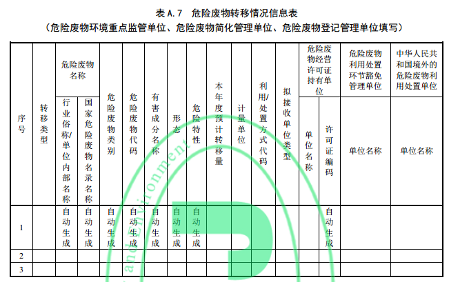 5.5.5 危險廢物轉(zhuǎn)移危險廢物轉(zhuǎn)移情況填寫內(nèi)容參見附錄 A.7,填寫應(yīng)滿足以下要求。